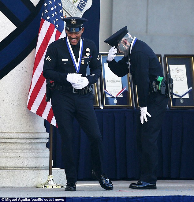 Актеры Уилл Смит и Джоэл Эдгертон попали в объективы фотокамер во время съемок фантастического фильма Bright. В кадре актеры предстают в униформе полицейского, на лице у Эдгертона грим. Съемки фильма проходят в Лос-Анджелесе.