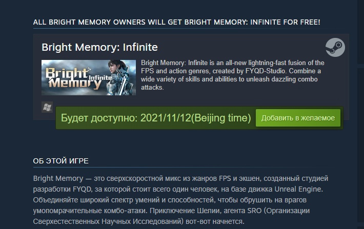 Разработчики из студии FYQD представили 14 минут игрового процесса шутера Bright Memory: Infinite в версии для PC и разрешении 4K. Игра станет доступна на платформе 11 ноября.