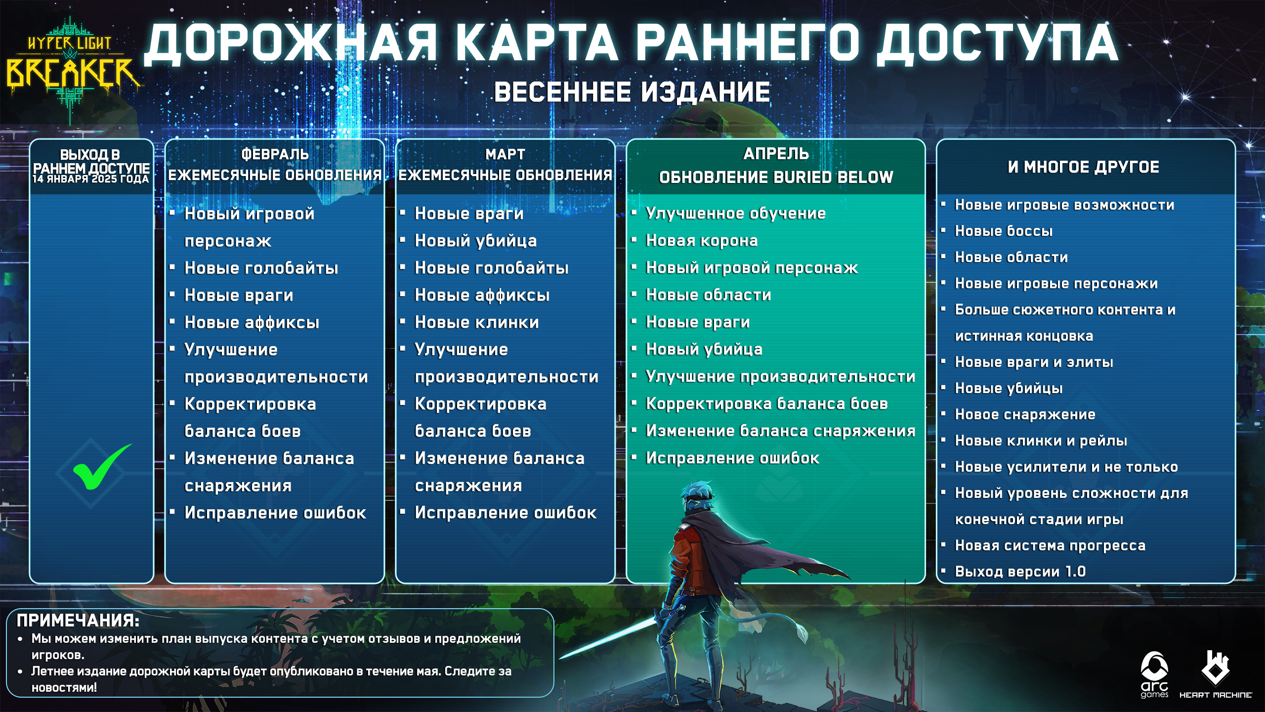 Студия Heart Machine поделилась с фанатами дорожной картой развития кооперативного рогалика Hyper Light Breaker. Судя по всему, разработчики планируют каждый месяц выпускать крупные обновления с новыми персонажами, противниками и локациями.
