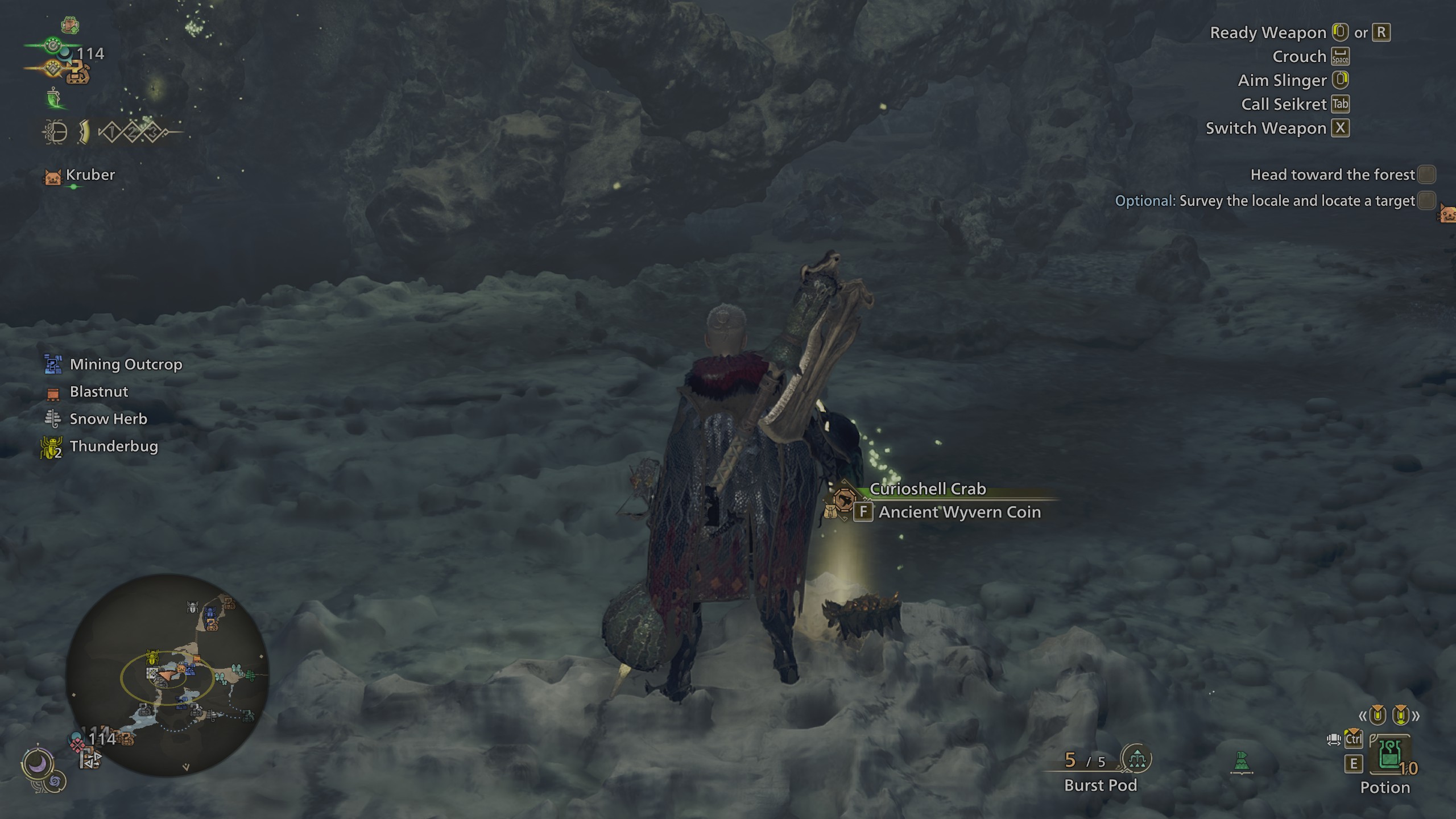 Один из первых способов получить Древние Монеты Виверны — поймать краба Curioshell с помощью сети для ловли. Этот краб появляется в рамках исследовательских квестов, которые можно пройти для Дарила в равнинном лагере после победы над Альфой Дошагума.