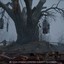 Атмосфера биома передана через мрачные детали – трупы в клетках, висящие на деревьях, стаи ворон, клюющие мертвецов, и зловещие руины за водной гладью. Всё это подчеркивает безнадежную атмосферу игрового мира.