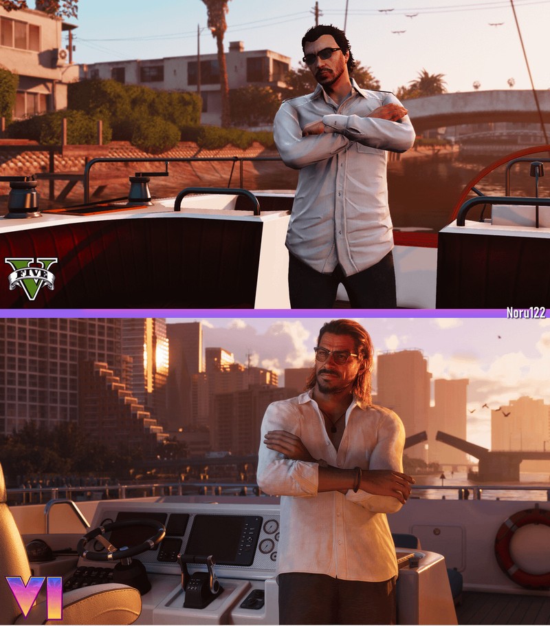 GTA 6 выйдет примерно через 13 лет после релиза GTA 5, так что ни у кого не было сомнений в том, что новая игра совершит очередной технологический скачок. Правда, было не совсем ясно то, насколько значительным этот скачок будет. Впрочем, хотя до релиза еще целый год, фанаты уже активно строят предположения о том, как реально будет выглядеть новая игра. Некоторые даже залезают в GTA 5, чтобы попытаться сделать максимально похожие сцены из трейлера GTA 6 и с официальных скриншотов.