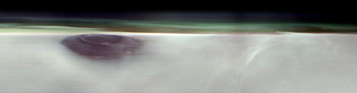 Чтобы получить этот впечатляющий кадр, орбитальный аппарат выполнил сложный маневр – развернулся на 90 градусов. Так как камера THEMIS не может поворачиваться для получения таких панорамных видов, Mars Odyssey приходится поворачиваться всем корпусом.