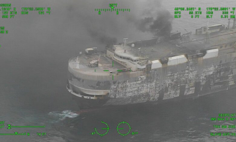 Грузовое судно с горящими электромобилями затонуло у берегов Аляски