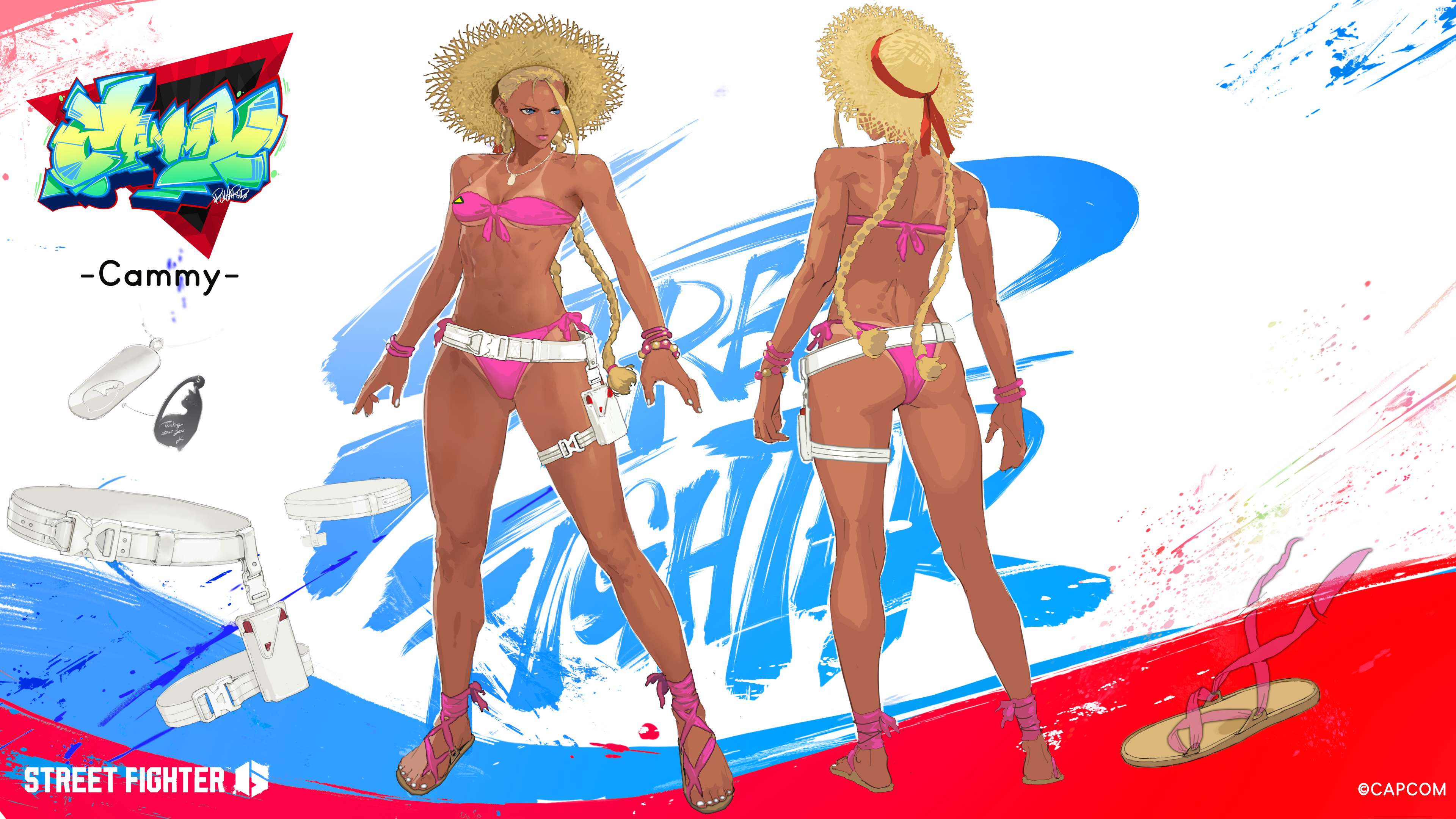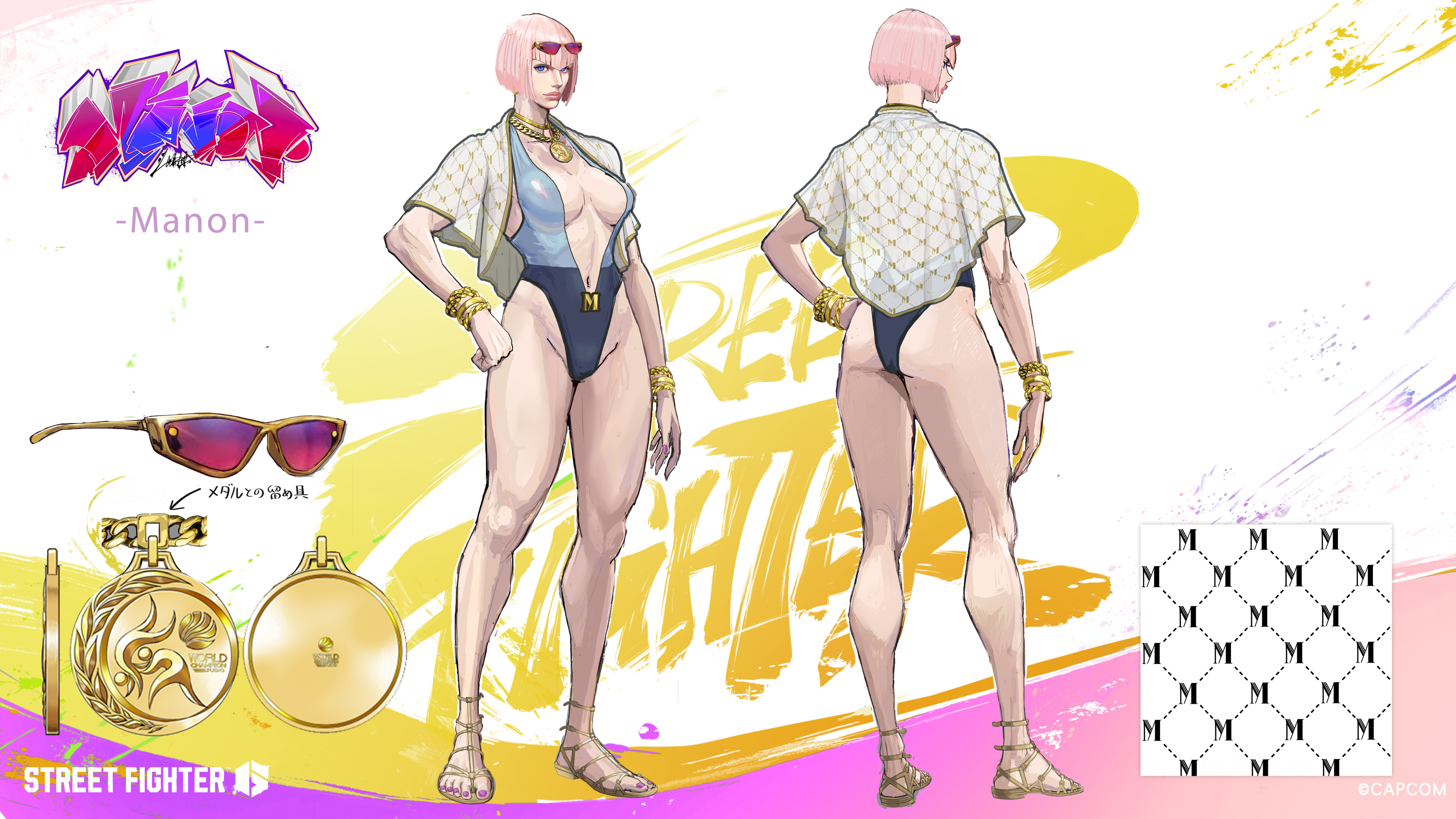 Стоит отметить, что при создании костюмов разработчики вдохновлялись сторонними артами. К примеру, наряды Чунь Ли и Кэмми созданы на основе работа Кину Нисимуры для Super Street Fighter 2 1993 года. А костюм Манон впервые появился на обложке комикса Street Fighter Swimsuit Special в 2023 году.