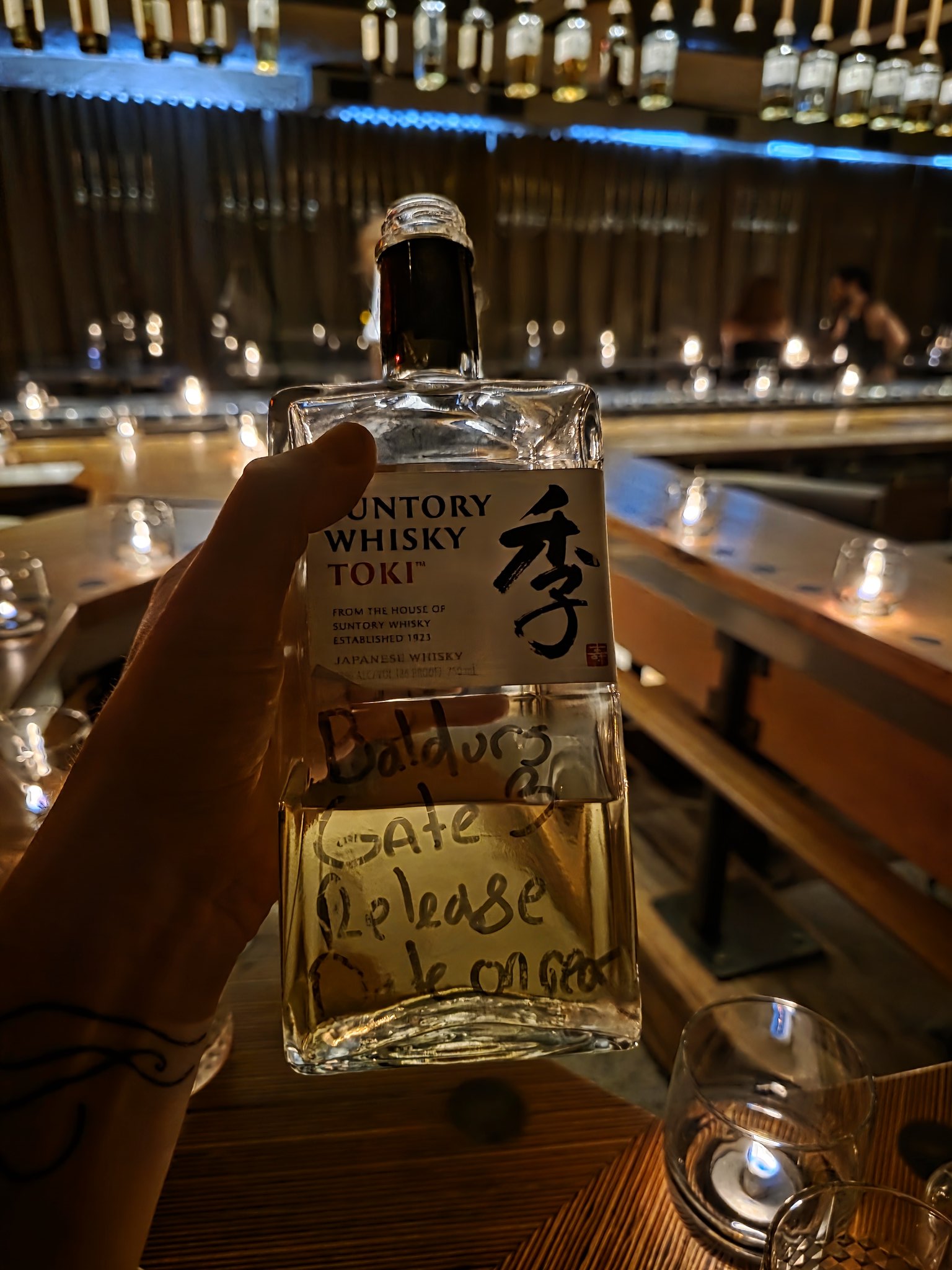 Пять лет и одну пандемию назад я написал дату релиза BG3 на этой бутылке виски и оставил её висеть в баре, и никто её не нашел.