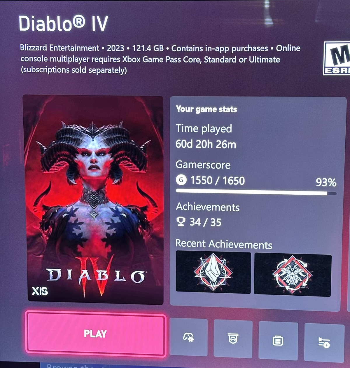 Босс Diablo 4 провел в игре более почти 1500 часов и все еще не открыл все достижения
