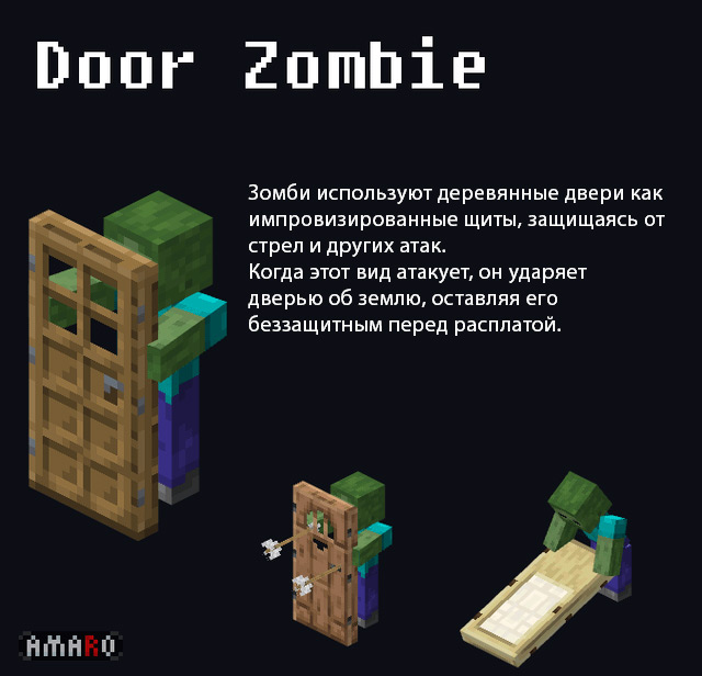 Игрок Minecraft предложил необычные варианты враждебных мобов с экипировкой – от зомби с дверью до утопленника в бочке
