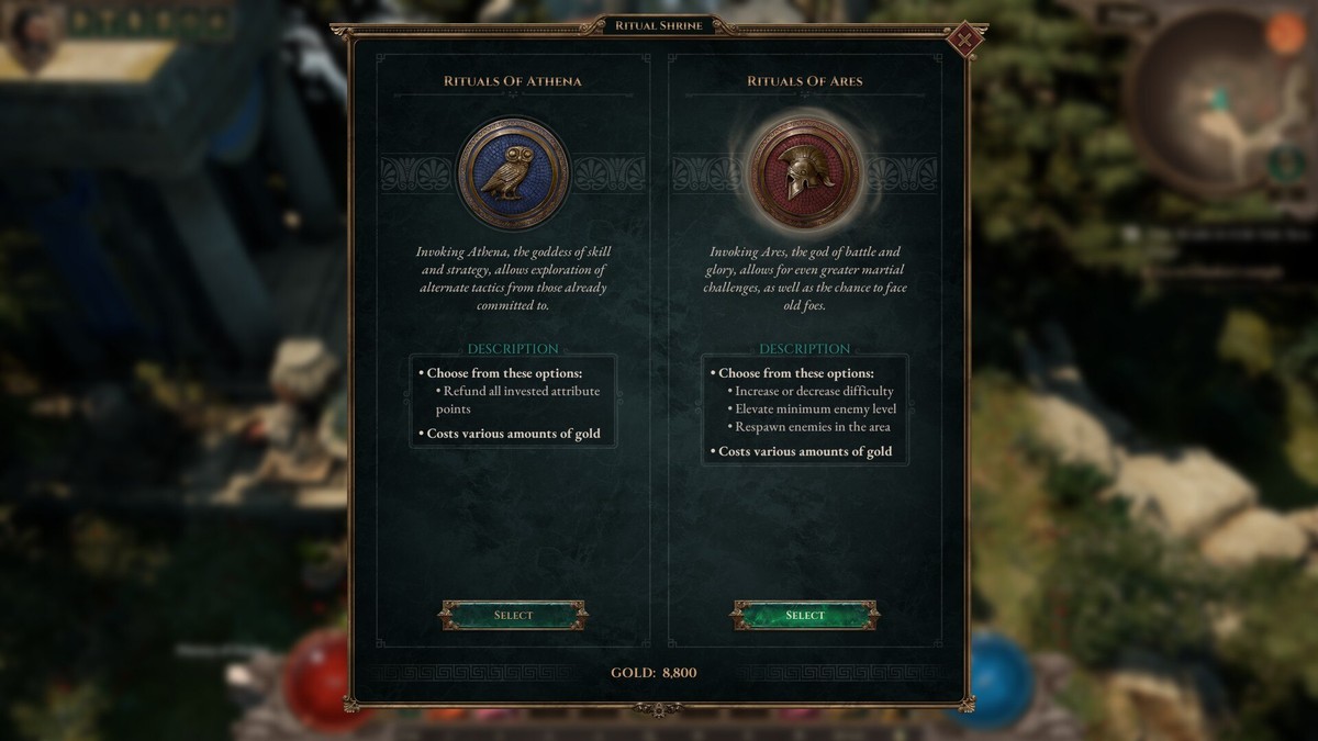 Если вы начали игру на более низкой сложности и хотите ее изменить (при условии, что вы не выбрали Hardcore), это можно сделать через Ритуальные Святилища (Ritual Shrines). Первое такое святилище находится в Пиргосе (Pyrgos) – нужно следовать по дороге на север от торговца и хранилища.