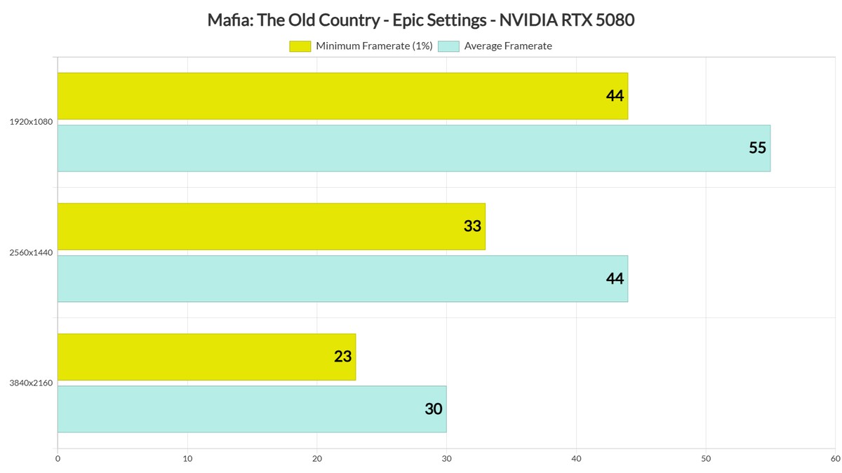 Журналисты из DSOGaming продолжают тестировать видеоигровые новинки. На этот раз их длинные руки дотянулись до шутера Mafia: The Old Country. Правда, на этот раз речь идет об экспресс-тесте, так что для него использовались процессор AMD Ryzen 9 7950X3D, 32 ГБ DDR5 с частотой 6000 МГц, и всего две видеокарты: RTX 4090 и RTX 5080.