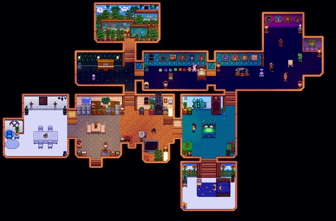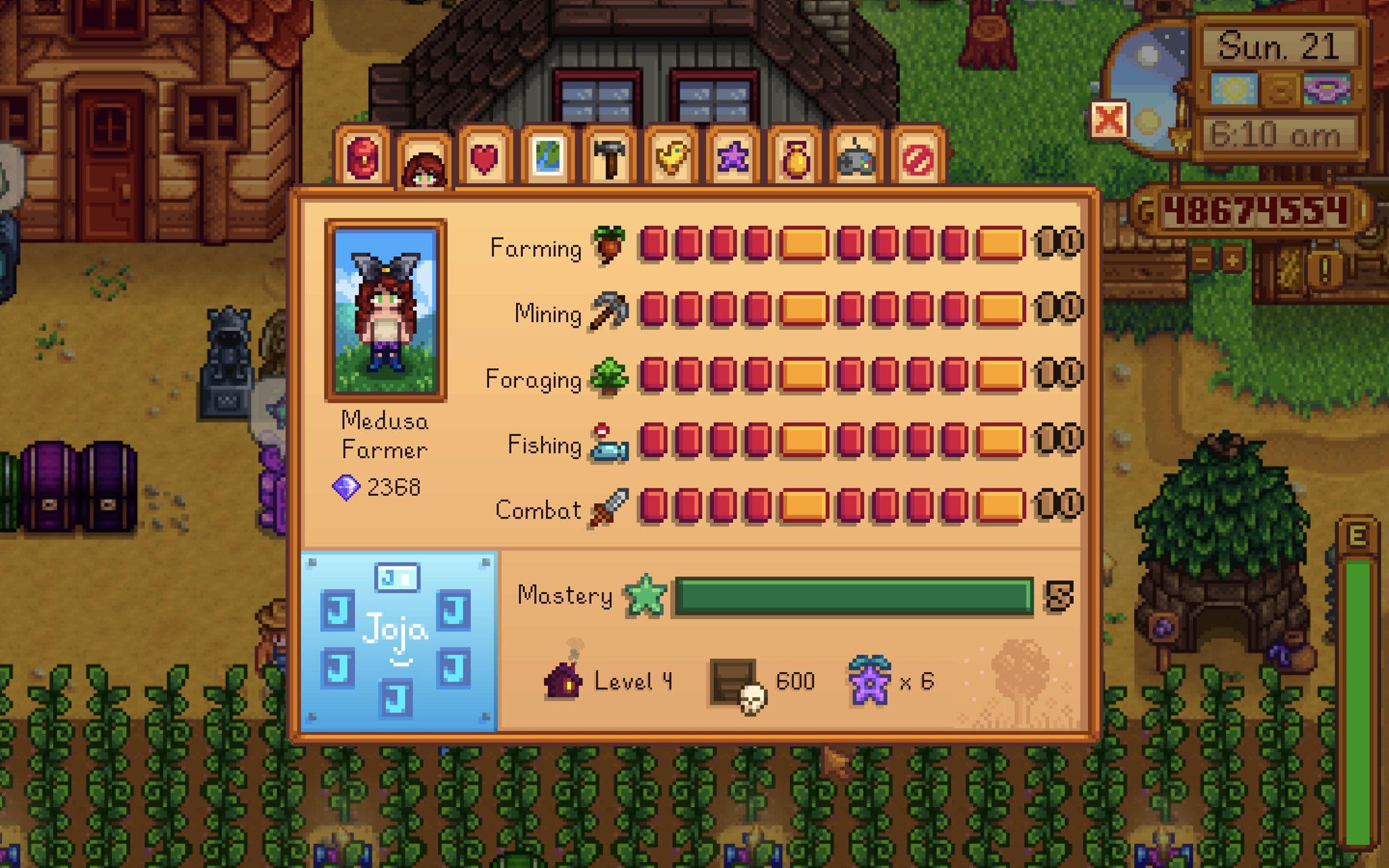 Она выбрала Joja Mart для этого сохранения, чтобы быть особенно порочной. Также она носит счастливые фиолетовые трусы мэра, поэтому он больше с ней не разговаривает.