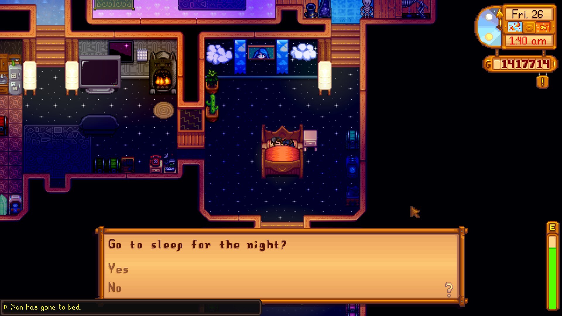 Если бы Stardew Valley строго следовала реальной логике, игра превратилась бы в стрессовый симулятор выживания, а не в уютную сельскую идиллию. В то же время, все это представляет любопытную концепцию мира, скрытого от наших глаз. Stardew Valley больше ощущается как социальный эксперимент в стиле Fallout, или искусственный кусочек мира, построенный где-то на гигантской космической станции, где андроиды проживают свои бесконечные жизни, погруженные в рутину. Может быть, это своего рода необходимость для жителей космического корабля поколений, который движется к далекой звездной системе, а тем временем позволяет некоторым членам экипажа переживать искусственные жизни, чтобы не потерять рассудок за сотни лет полета?