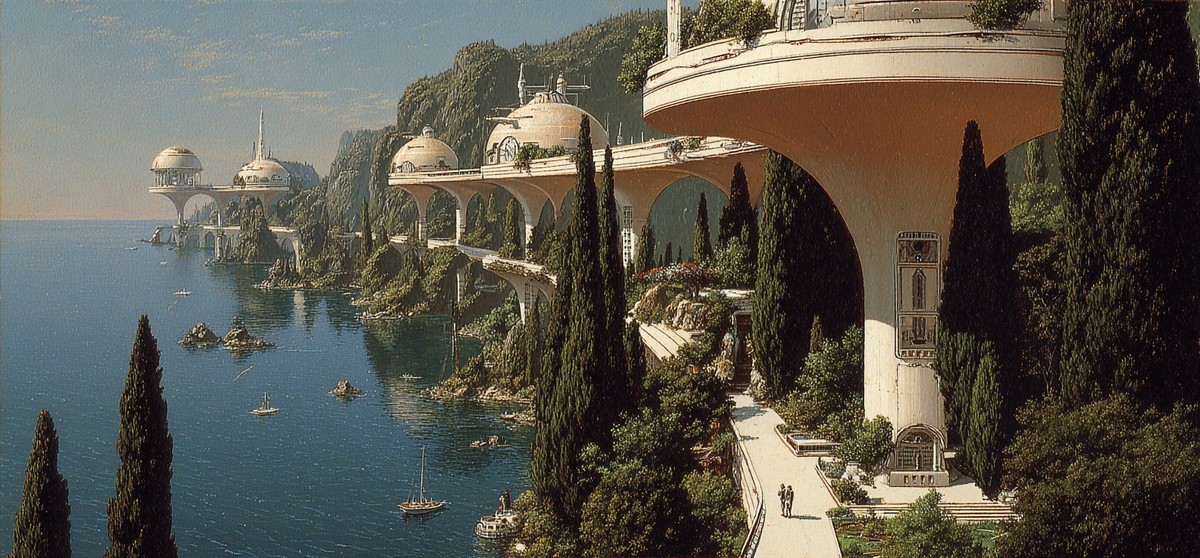 В этих мирах товары и услуги доступны всем без денег, торговли или бартера. Эта концепция в реальной жизни продвигалась визионерами вроде Жака Фреско, основателя проекта "Венера". Предложенная Фреско ресурсная экономика представляет будущие города, где автоматизация и ИИ обеспечивают потребности каждого – все так же бесплатно, как взять книгу в библиотеке, и ничто не находится в частной собственности. Он утверждал, что с передовыми технологиями ресурсы Земли могут легко поддерживать все население на высоком уровне жизни, поэтому деньги, налоги и собственность становятся ненужными пережитками.
