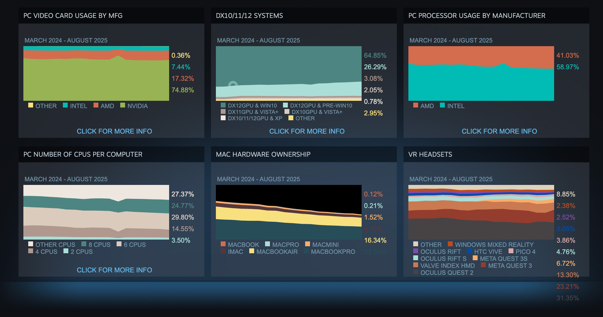 Доминирование экранов 1080p остаётся стабильным с показателем чуть выше 54%, мониторы 1440p занимают немногим более 20%, а 4K-дисплеи располагаются на третьем месте с долей около 4,5%.