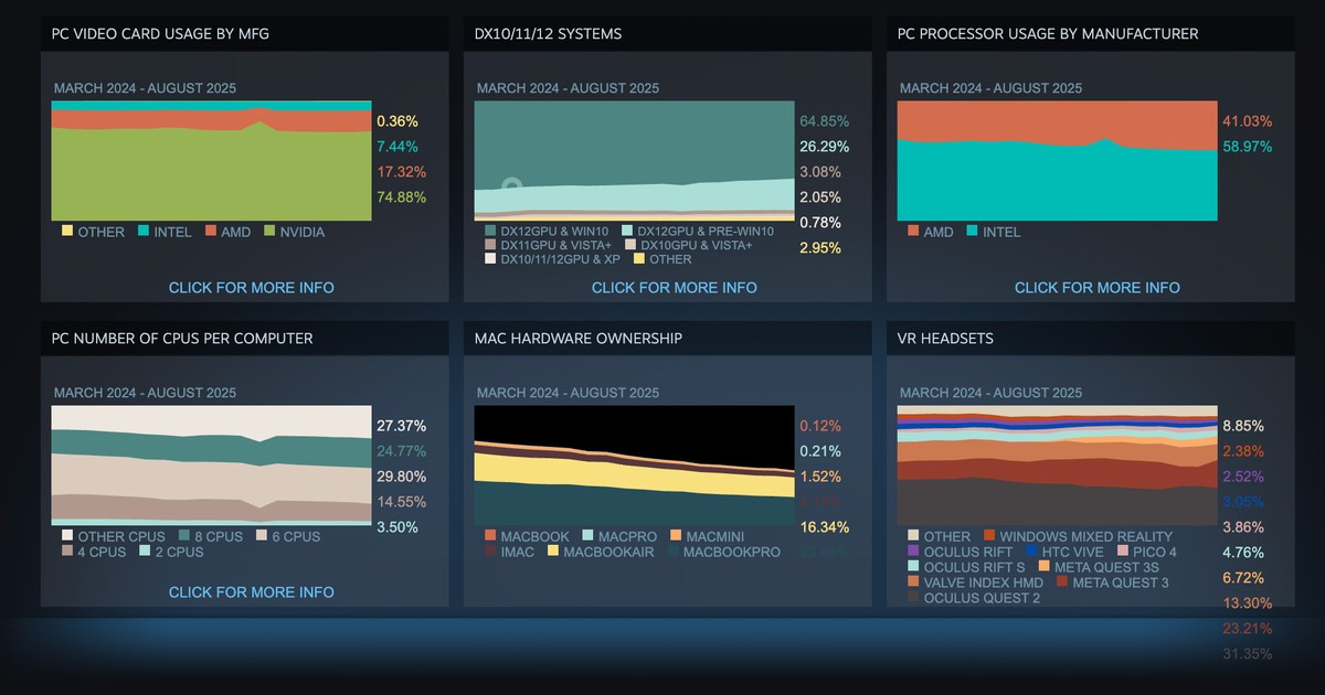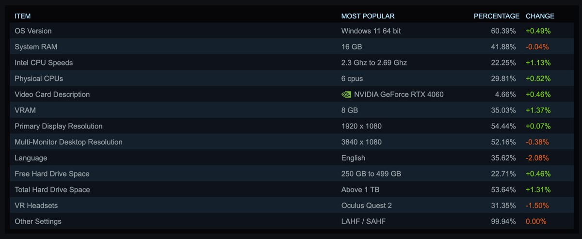 Тем временем, Windows 11 преодолела 60-процентный барьер согласно последней статистике. При этом значительная доля в 35% приходится на пользователей Windows 10, срок поддержки которой приближается к завершению. Linux показал небольшое снижение до 2,65% от общего числа игроков Steam.