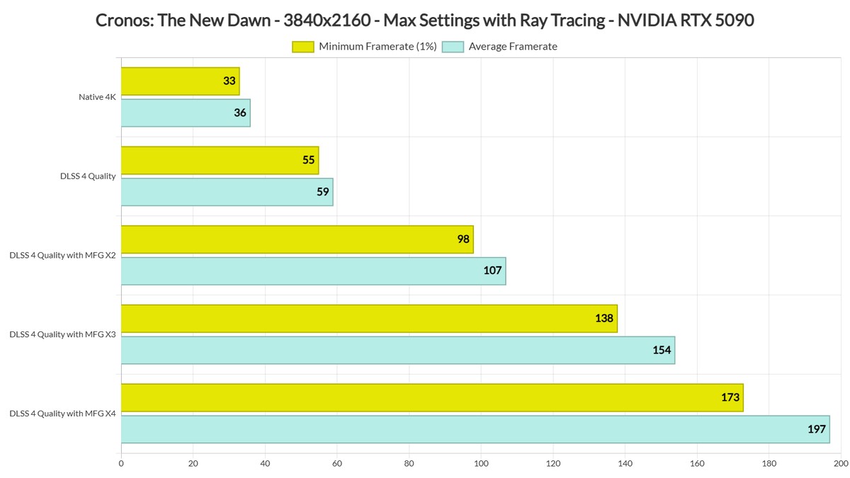 В Cronos: The New Dawn неплохая реализация MFG, а RTX 5090 способна выдавать больше 30 FPS в 4К с трассировкой лучей даже без DLSS