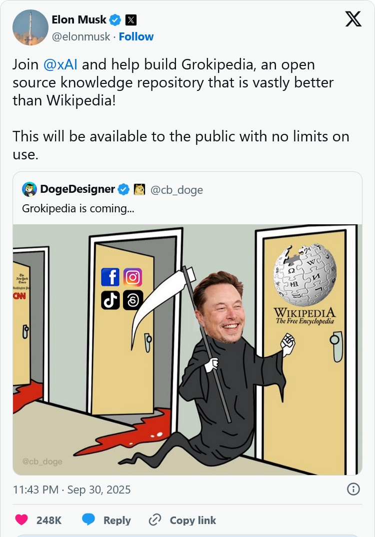 Илон Маск анонсировал создание конкурента Wikipedia