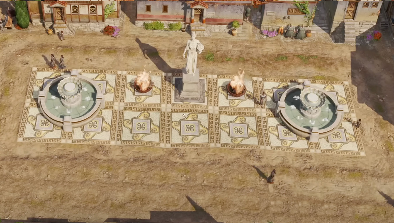 Ютубер Nivarias показал эту функцию в своём ролике, посвященном демонстрации релизной версии градостроителя. Новая система паттернов земли позволяет заполнять пустые участки травой, грязью, песком. Также доступна специальная текстура мозаики для более поздних этапов игры, а также обычные варианты вроде каменной плитки. Вместо размещения элементов по одному система автоматически заполняет целые области, что значительно упрощает создание площадей и декоративных зон.