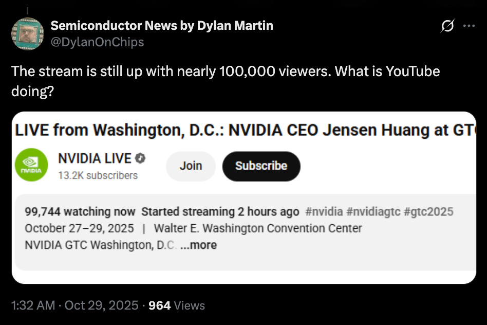Фальшивая трансляция с тех пор удалена, но официальное видео с кейноута теперь набрало сотни тысяч просмотров. Ситуация выглядит особенно иронично, учитывая, что Nvidia достигла оценки в $4 триллиона ранее в этом году и приближается к отметке в $5 триллионов во многом благодаря своим достижениям в области ИИ. Сам Хуанг недавно отклонил опасения по поводу пузыря на рынке ИИ-инвестиций, хотя совершенно очевидно, что сектор ИИ не приносит той выгоды, которую так агрессивно ему приписывают.