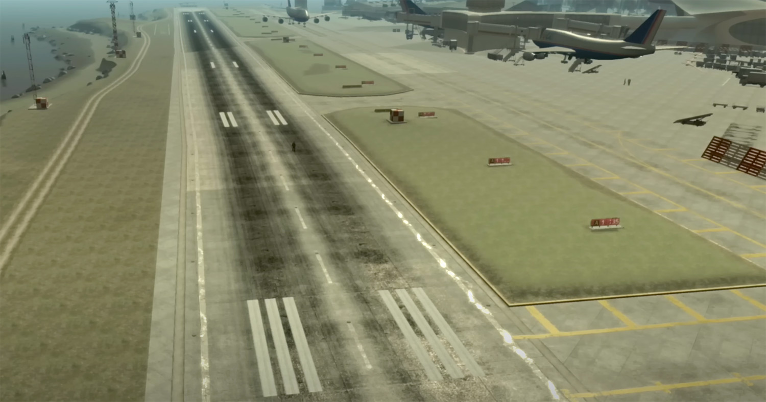 Впрочем, одну деталь GTA 3 случайно сделала правильно. Все огни взлетной полосы в игре красные, что изначально выглядит ошибкой – обычно центральные огни белые и становятся красными только на последних 300 метрах с каждого конца. Но полоса в Francis International настолько короткая (около 600 метров), что технически вся она находится в пределах 300 метров от конца. Так что красные огни здесь уместны, хотя и по случайности.