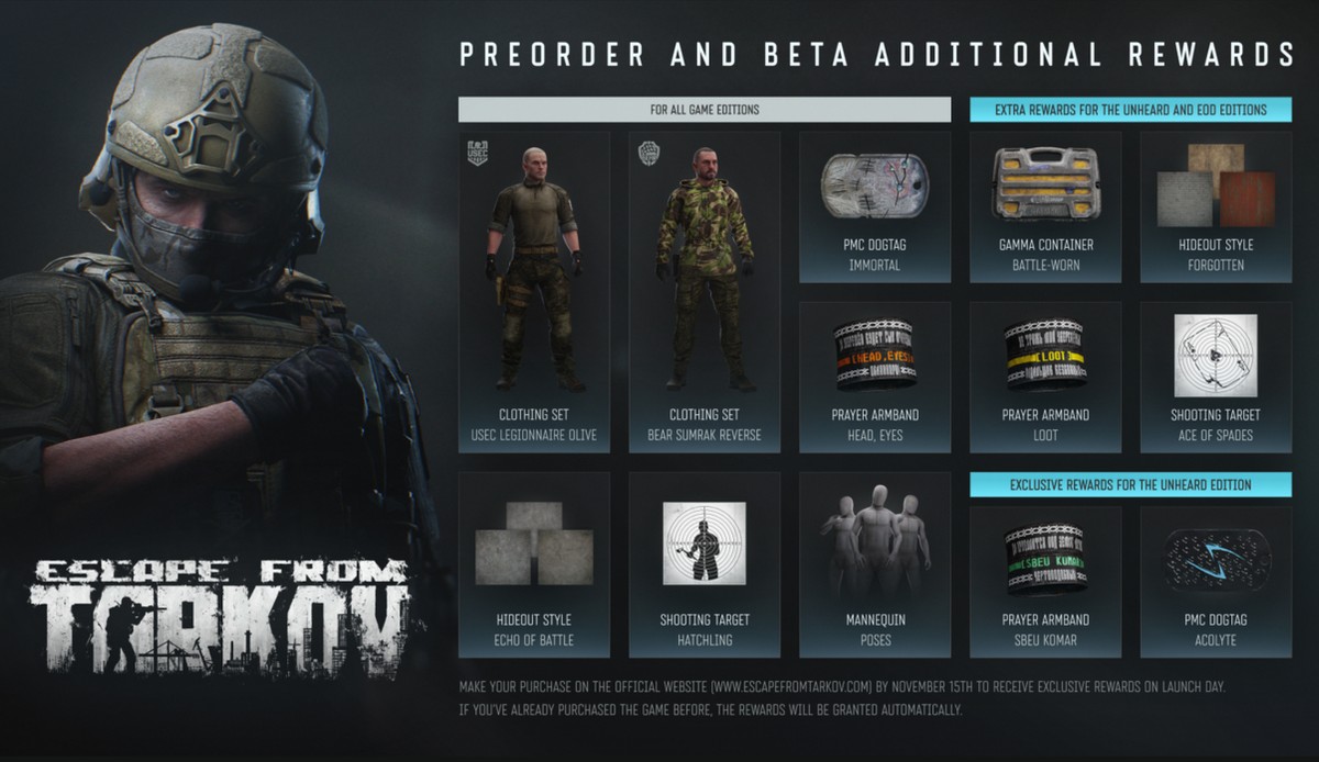 Раскрыты награды за предзаказ Escape from Tarkov перед выходом версии 1.0
