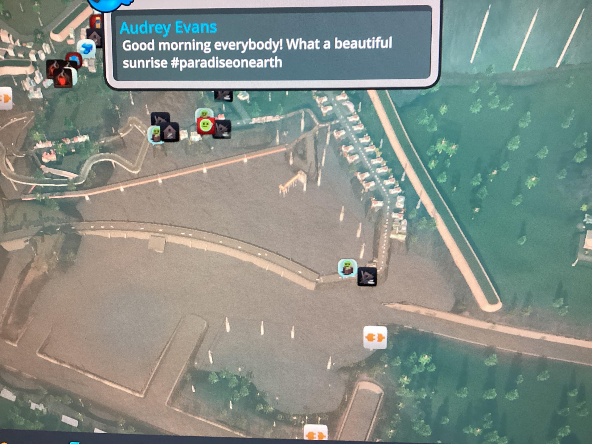 Несмотря на очевидную антиутопию, на одном из кадров видно, что виртуальная жительница города по имени Одри Эванс опубликовала сообщение: