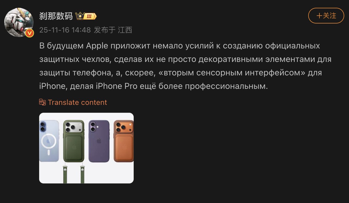 Apple работает над защитными чехлами для будущих моделей iPhone Pro со встроенным сенсорным слоем, о чем сообщил инсайдер Instant Digital в Weibo. Предполагается, что чехлы будут служить "вторым слоем сенсорного интерфейса" для смартфонов.