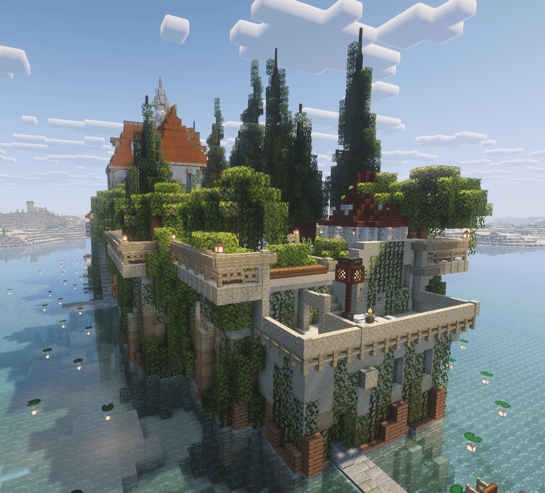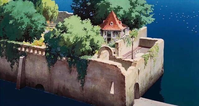 Для создания детализированной версии локации из недооценённого, по мнению фанатов, фильма Ghibli использовались моды Chipped, Underlay, Axiom и Nemo's Vertical Slabs. Постройка включает сад, архитектурные детали и общую атмосферу средиземноморского острова из аниме.