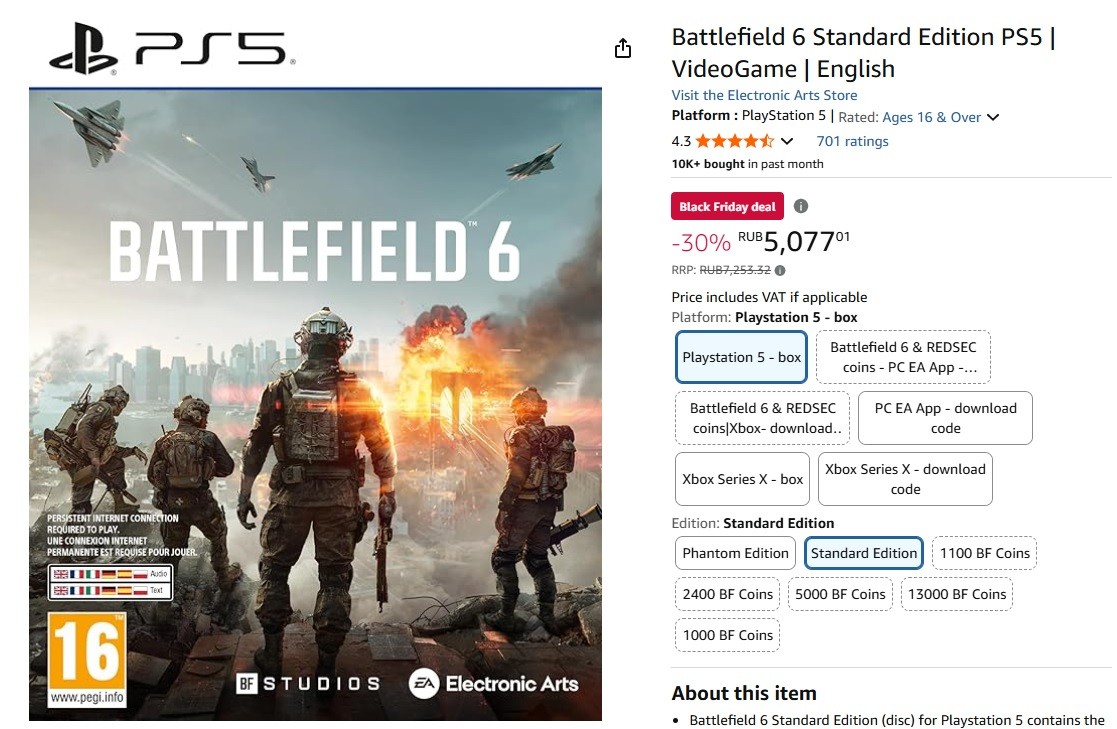 PS5-версия Battlefield 6 уже продается с огромной скидкой из-за Черной пятницы