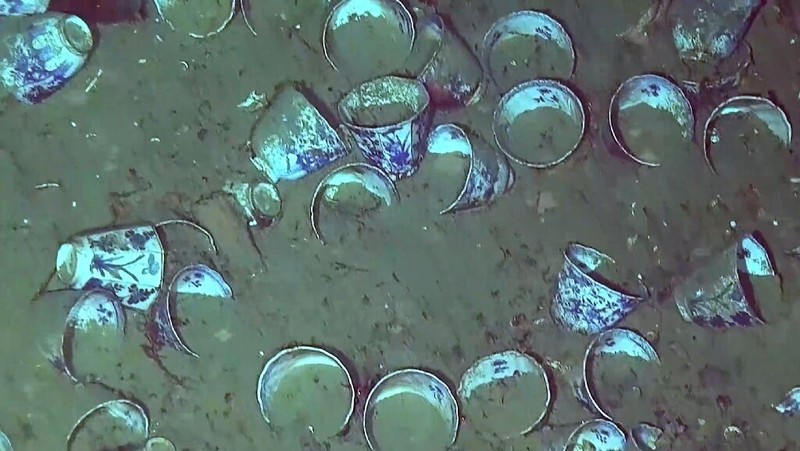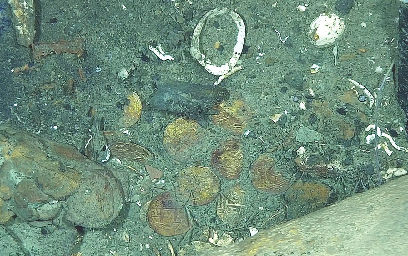 Среди поднятых предметов – бронзовая пушка, фрагменты веревки, дерева и металла, связанные с пушкой, три бронзовые и золотые монеты, две целые фарфоровые чашки и несколько фарфоровых фрагментов.
