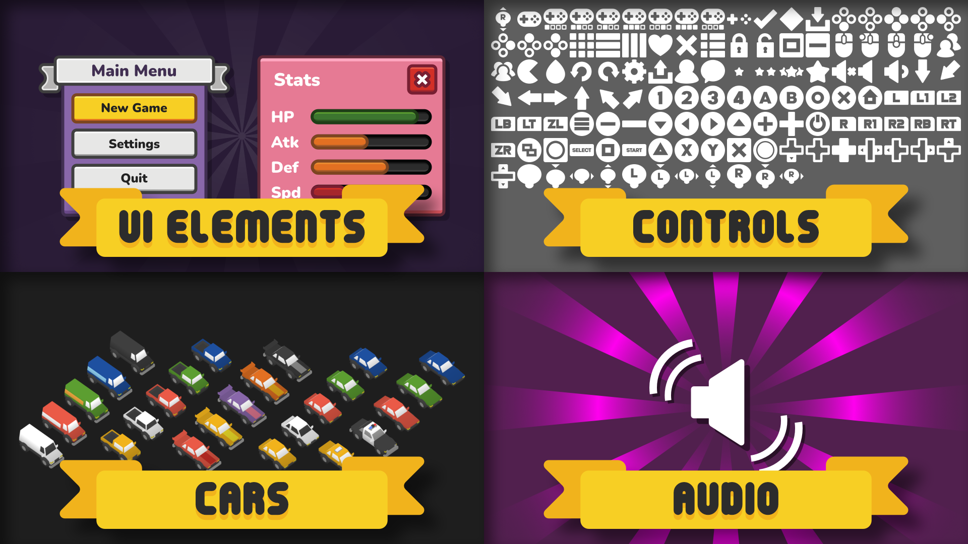 Широкий спектр жанров и стилей, представленных в наборе, даст разработчикам большой простор для творчества. Простой и чистый стиль HD-ассетов делает их легко адаптируемыми и удобными для расширения в крупных проектах.