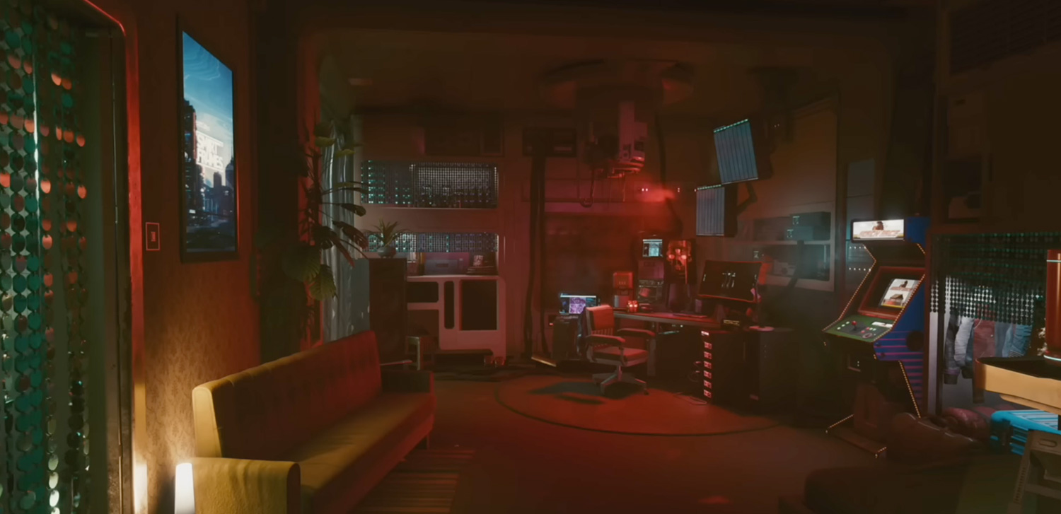 Квартира персонажа располагалась на верхних этажах здания. Хотя дверь технически нефункциональна в игре, Остин с помощью видеомонтажа создал иллюзию небольшой студии с кроватью, ванной и компьютером. Примечательно, что кухни в квартире не оказалось – как и в любом другом жилье Cyberpunk 2077, что создало проблему с поиском еды.