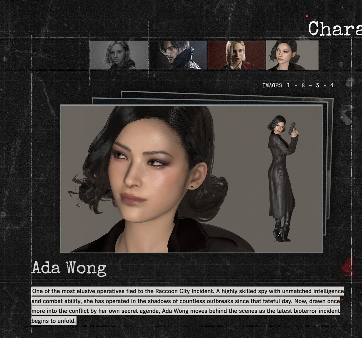 Также в сети нашли биографию Ады Вонг из Resident Evil Requiem. Маловероятно, что она станет играбельным персонажем, но должна появиться в игре, судя по модельке. Заметно, что постареет она не так сильно, как Леон. Неизвестно, так сказываются азиатские гены или заражение паразитом в ремейке Resident Evil 4. В 2028 Аде Вонг будет 54 года, а Леону 51.
