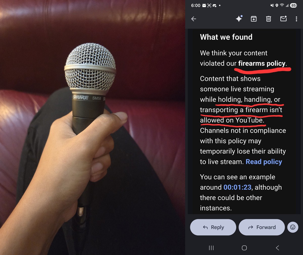 ПОЖАЛУЙСТА, РАЗБЕРИТЕСЬ С ЭТИМ. Наш стрим был отключён за держание "огнестрельного оружия"… это микрофон.