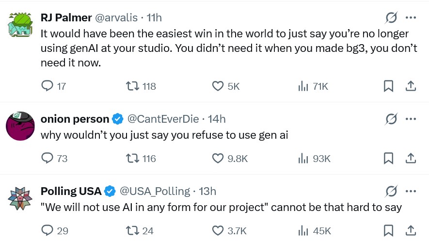 Larian анонсировала сессию общения с фанатами для обсуждения использования генеративного ИИ в играх студии