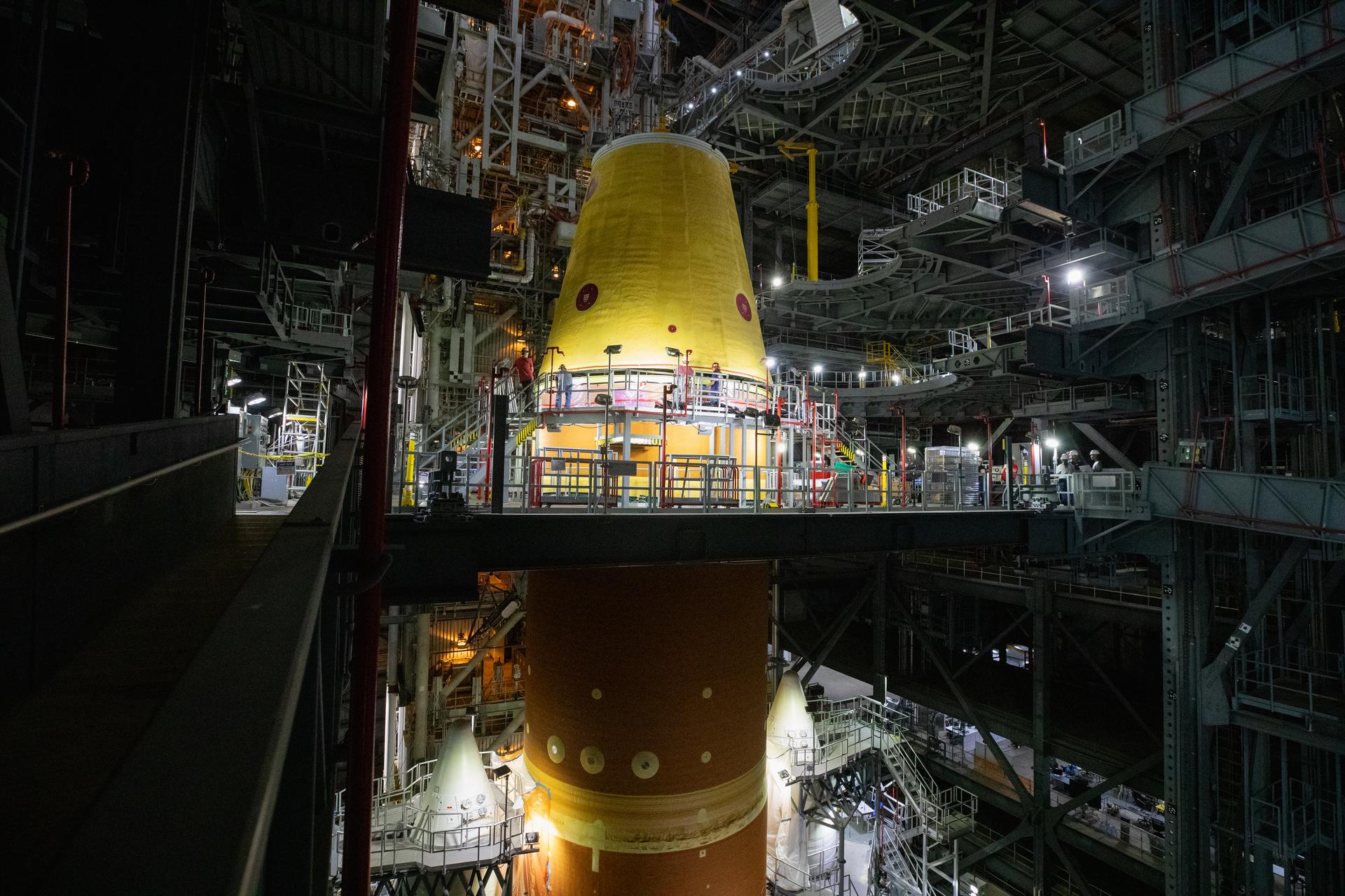 SLS и Orion полностью собраны внутри здания вертикальной сборки в космическом центре Кеннеди. После завершения финальных тестов носитель вывезут на стартовый комплекс 39A, что займет около 10 часов. На площадке инженеры NASA проведут серию финальных проверок, последней из которых станет влажная генеральная репетиция – ракету и капсулу включат, SLS заправят топливом, проведут обратный отсчёт без запуска двигателей и отработают безопасный слив горючего.