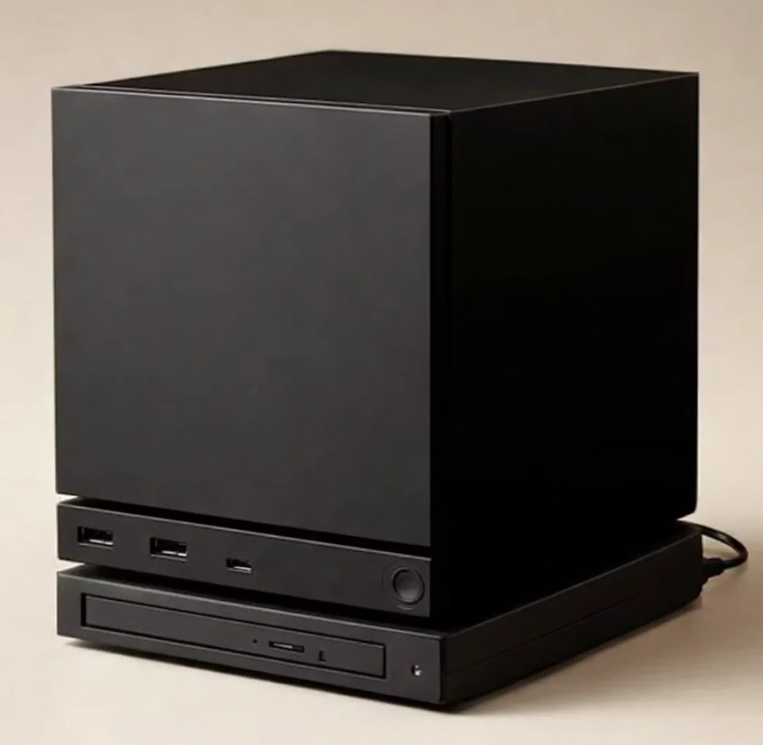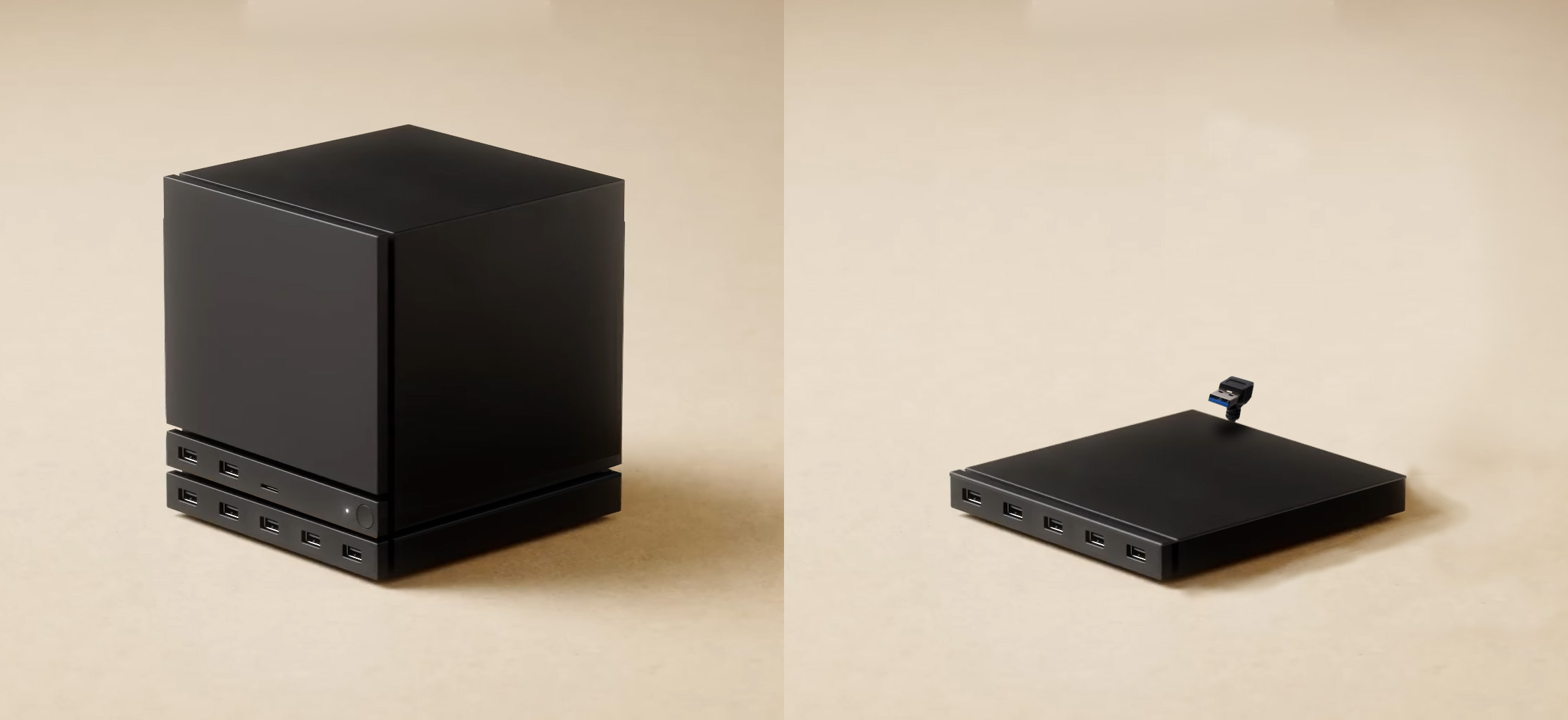 Среди концептов выделяется версия со съёмными контроллерами по бокам корпуса – гибрид между Steam Machine и портативным геймпадом, напоминающий Nintendo Switch, но в форме куба. Играть на таком явно будет не очень удобно.