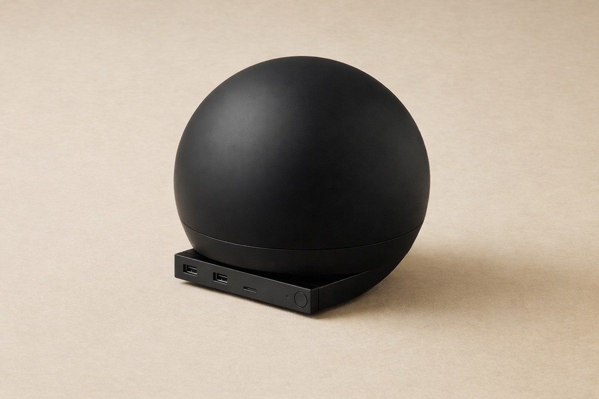 Среди безумных идей выделяется сферическая версия Steam Machine – чёрный шар на платформе с портами, напоминающий футуристический проектор или умную колонку. Концепт игнорирует практичность охлаждения и компоновки компонентов ради эстетики, но смотрится эффектно.