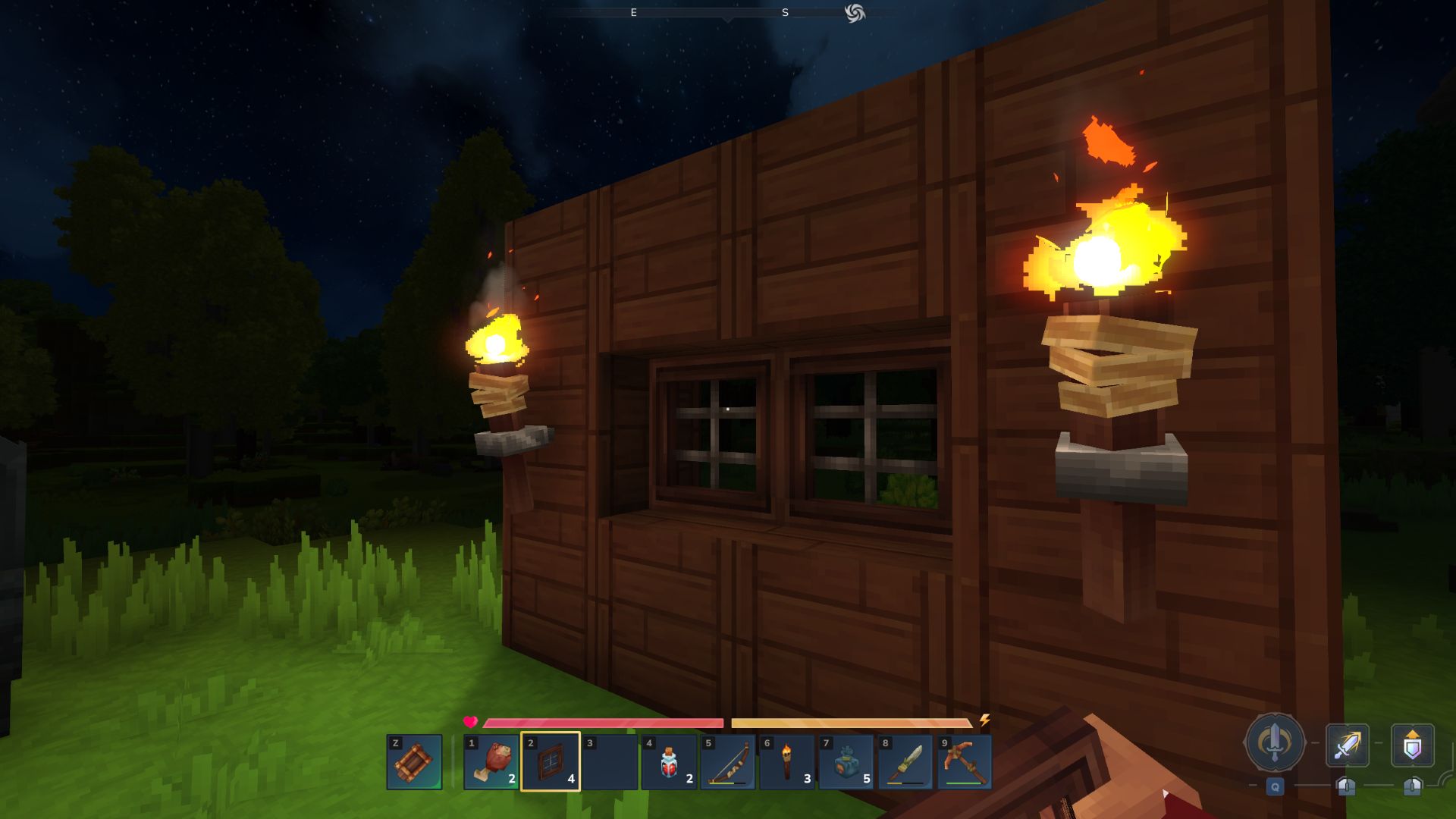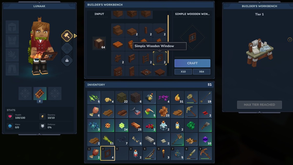 Создание окон в Hytale не требует стекла вообще. Верстак строителя позволяет скрафтить четырехпанельное стеклянное окно из любого типа древесины. Один блок дерева дает два готовых окна – экономичный рецепт для масштабного строительства.