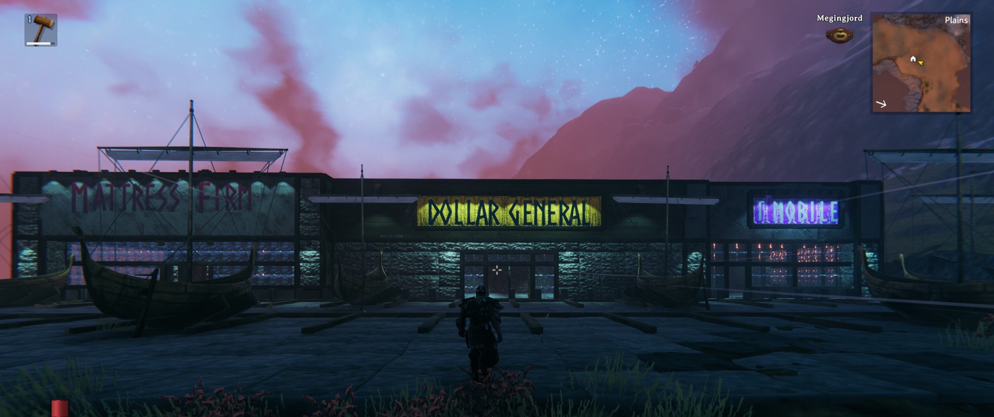 Безумный игрок Valheim строит в мире викингов реалистичные копии американских сетевых ресторанов и магазинов