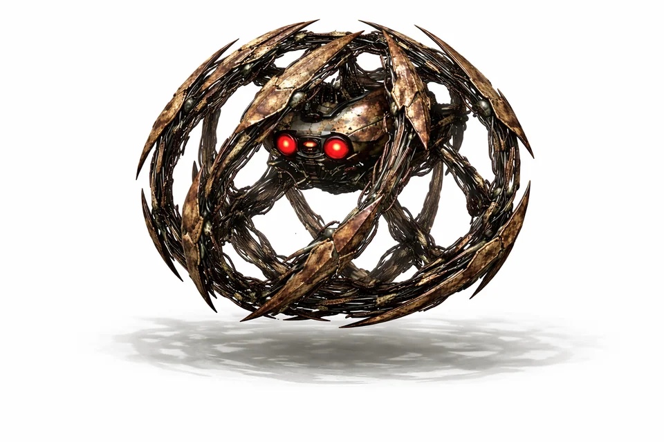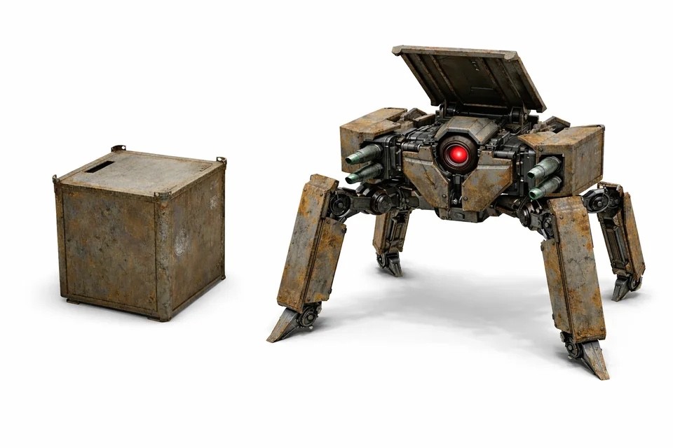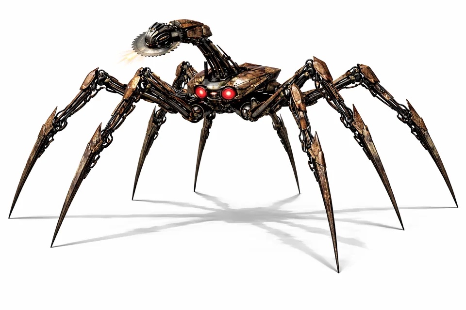 Одним из самых коварных концептов стала Вдова – паукообразный робот цвета ржавчины с восемью конечностями и двухсегментным корпусом. Машина спроектирована лёгкой и скрытной: для быстрого перемещения она складывает ноги внутрь, превращаясь в компактный шар, который тихо катится по местности, неотличимый от обычного перекати-поля. При обнаружении рейдера Вдова таранит жертву, отскакивает и разворачивает конечности, выдвигая небольшую циркулярную пилу. Робот хаотично мечется по земле, атакуя вращающимся лезвием до своего уничтожения. В развёрнутом состоянии машина издаёт пронзительный металлический шум, но в свёрнутом виде совершенно скрытна. У неё 65 единиц здоровья и лёгкая броня на грудной клетке.