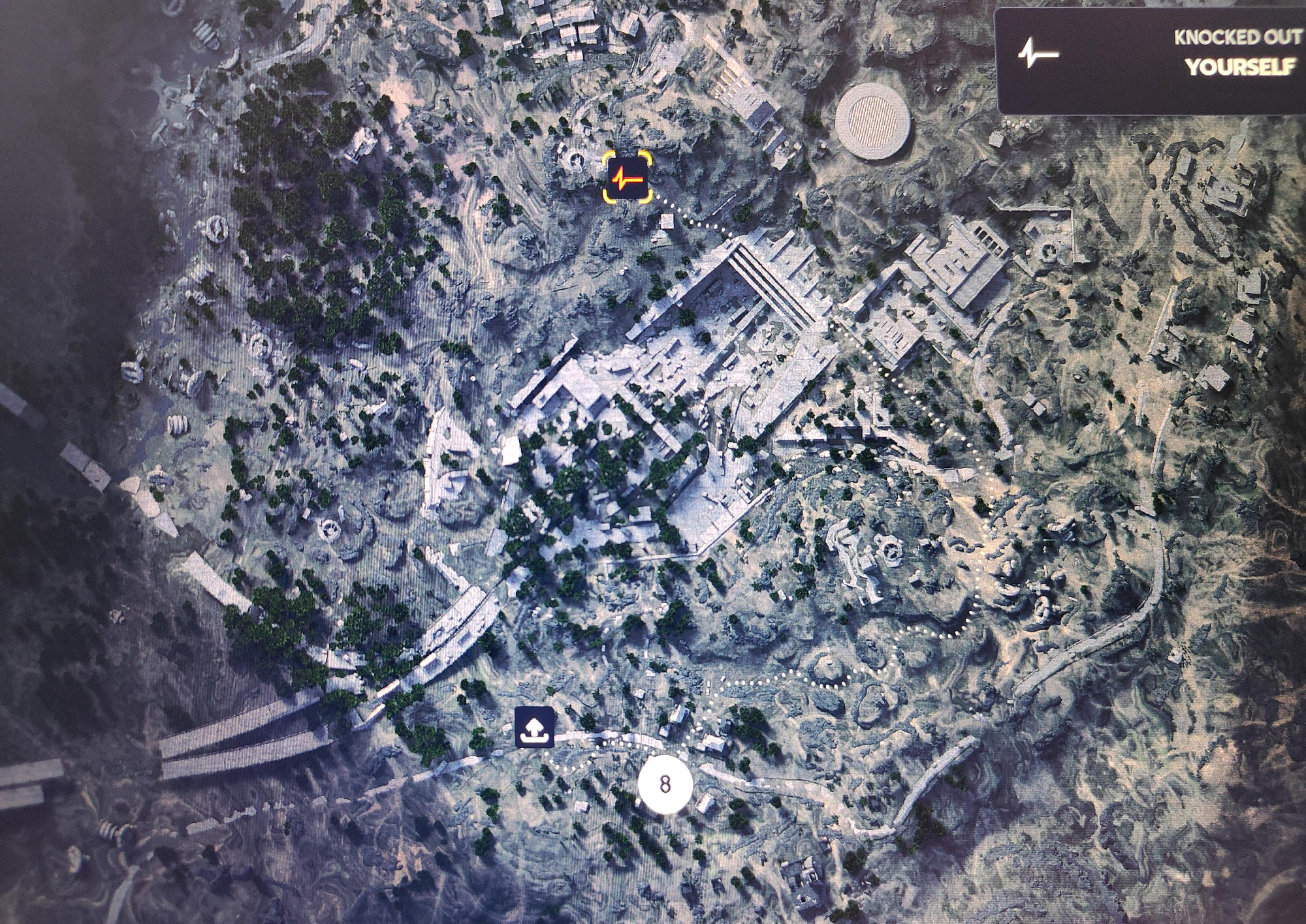 Тут внезапно появился незнакомый рейдер. За 30 секунд до падения финальной бомбы он стабилизировал Spare_Cartoonist_892 бинтами. Увы, игрок без микрофона не мог крикнуть "вызывай шахту, спасайся сам". Хотя рейдер побежал обратно к шахте, время уже истекло – бомба упала раньше.