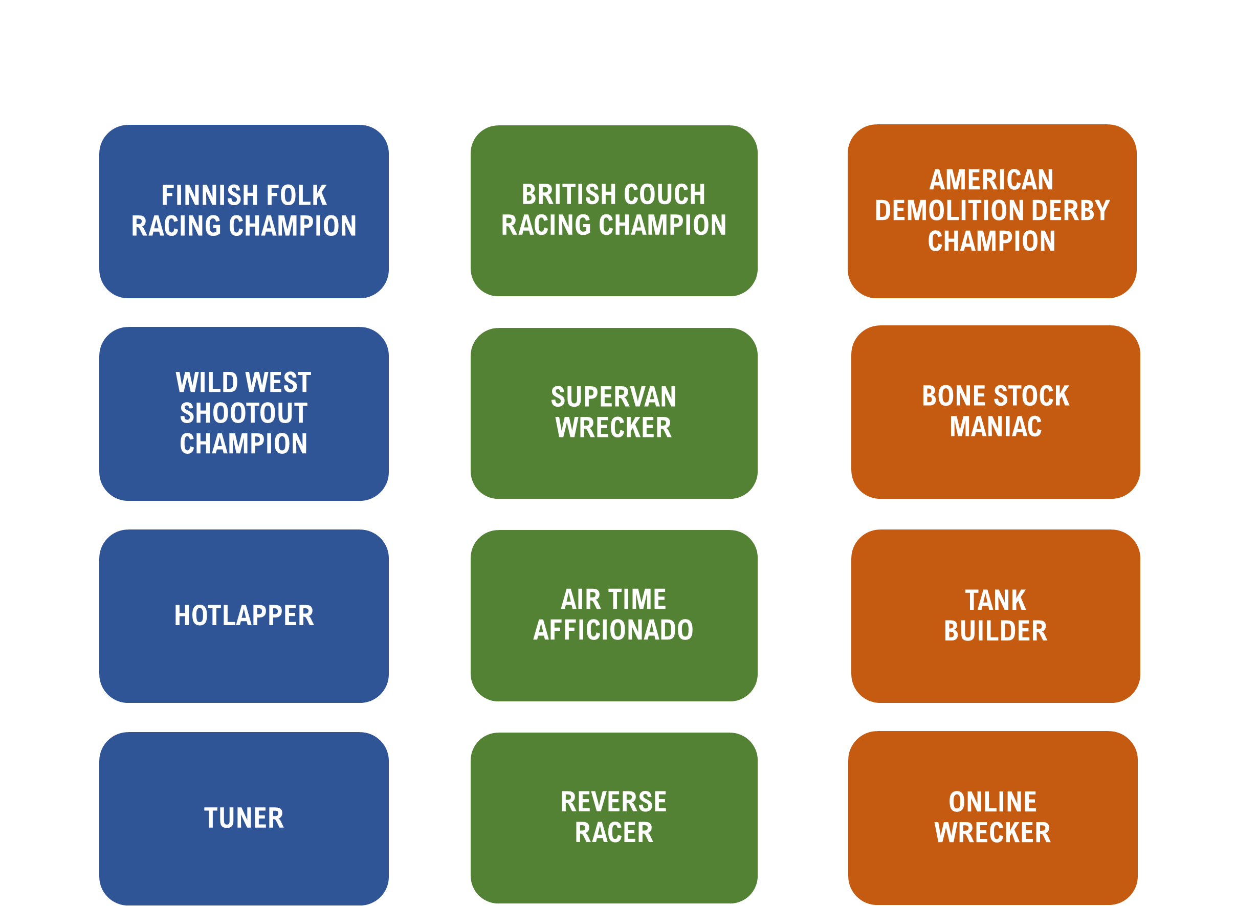 Разработчики привели пример достижения "Finnish Folk Racing Champion", которое требует 10 000 очков гоночного счета в шести доступных событиях. Опытный гонщик может заработать эти очки всего за три события. Менее опытный игрок, который любит вызовы, может пройти четыре или пять событий, финишируя при этом не первым. Тот, кто плохо гоняется, но любит дрифт, может заработать очки, финишируя в конце гонки, но эффектно управляя заносами.
