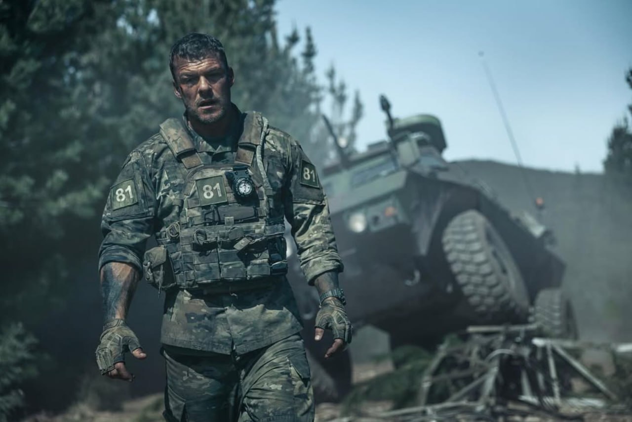 Звезда "Ричера" Алан Ричсон в трейлере боевика War Machine спасается от убийственного робота
