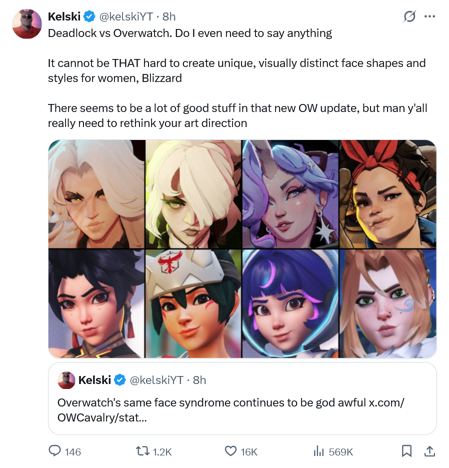 Критика усилилась на фоне сравнения Overwatch с прямыми конкурентами. Игроки приводят в пример шутер Deadlock от Valve и Marvel Rivals, подчеркивая, что в этих проектах женские образы обладают более выразительными и уникальными чертами лица. Фанаты призывают разработчиков Blizzard пересмотреть свой подход к арт-дирекшну и перестать использовать одну и ту же безопасную модель лица для всех новых героинь.