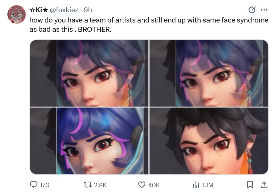 Сообщество Overwatch вновь всколыхнула волна критики в адрес художественного стиля Blizzard. Поводом послужил так называемый "синдром одинаковых лиц", который фанаты обнаружили у женских персонажей. Пользователи социальных сетей отмечают, что черты лица героинь, включая недавно представленную Ань Жань, почти идентичны моделям Кирико и Юноны, что лишает их индивидуальности и визуальной глубины.
