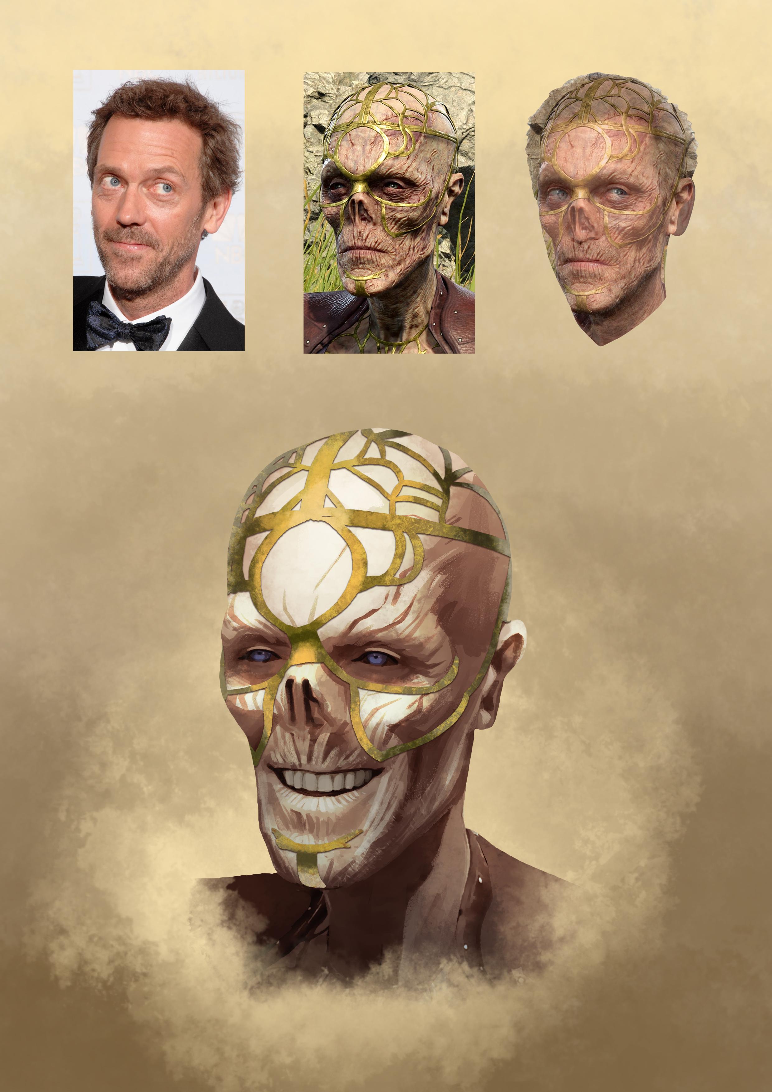 На изображении видно, как структура черепа Иссохшего почти идеально совпадает с пропорциями лица британского актёра. Совмещённый портрет выглядит настолько органично, что многие в комментариях начали всерьёз обсуждать кастинг Хью Лори на роль Иссохшего в анонсированной экранизации Baldur's Gate от HBO. Нижняя часть арта – полноценная отрисовка "восстановленного" Визерса с чертами Лори – моментально стала мемом.
