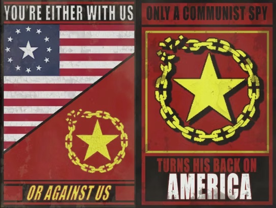 Уникальный ужас истории из сериала Fallout состоит в том, что "коммунистическая угроза" оказывается легкой ширмой, за которой сами лидеры Америки готовят уничтожение мира, якобы спасённого ими для потомков.