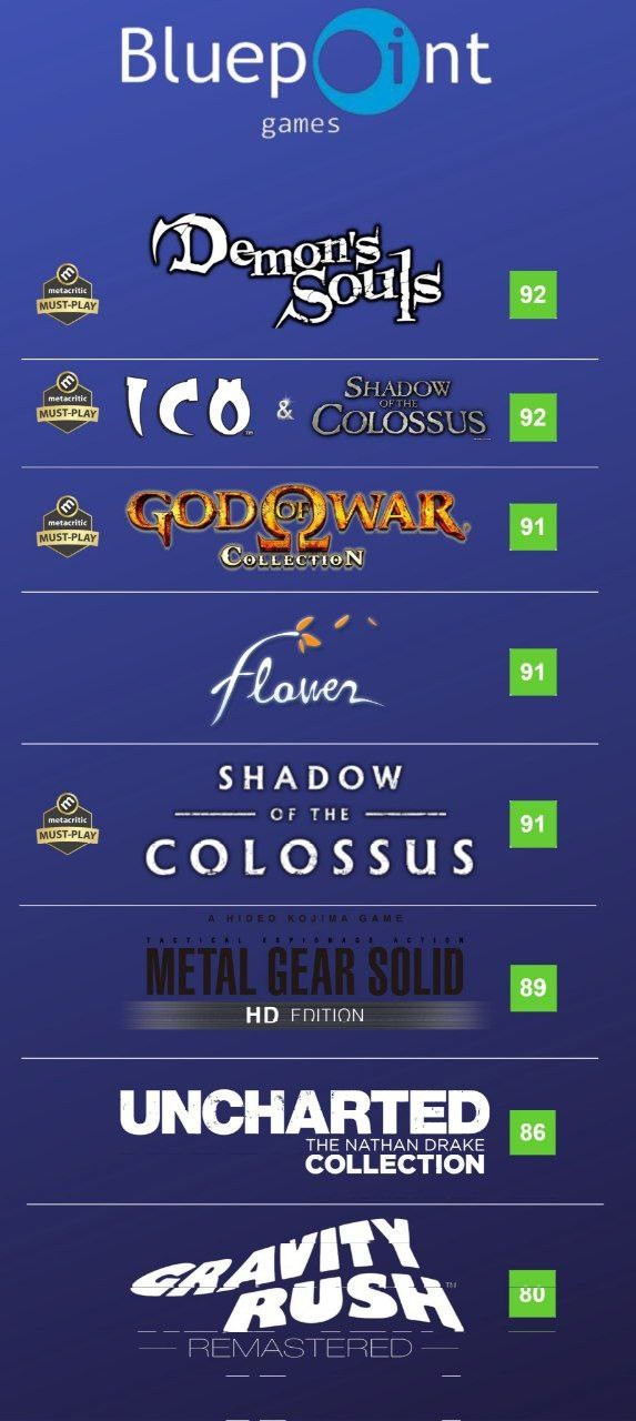 Bluepoint Games базировалась в Остине, штат Техас, и долгое время тесно сотрудничала с Sony ещё до официального поглощения в 2021 году. За свою историю студия выпустила God of War Collection, Metal Gear Solid HD Collection, The Ico & Shadow of the Colossus Collection, Uncharted: The Nathan Drake Collection, Gravity Rush Remastered, а последним крупным релизом стал ремейк Demon's Souls для PS5 в 2020 году.