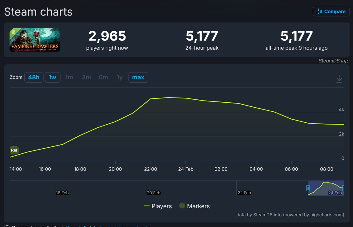 Студия Poncle выпустила бесплатное демо Vampire Crawlers – второй игры во вселенной Vampire Survivors – на ПК и Xbox в рамках фестиваля Steam Next Fest 2026. Тайтл сменил жанр с бухллет-хелл рогалика на пошаговую карточную игру с элементами строительства колоды. Демо уже привлекло более 3000 одновременных игроков в Steam сразу после запуска 23 февраля.
